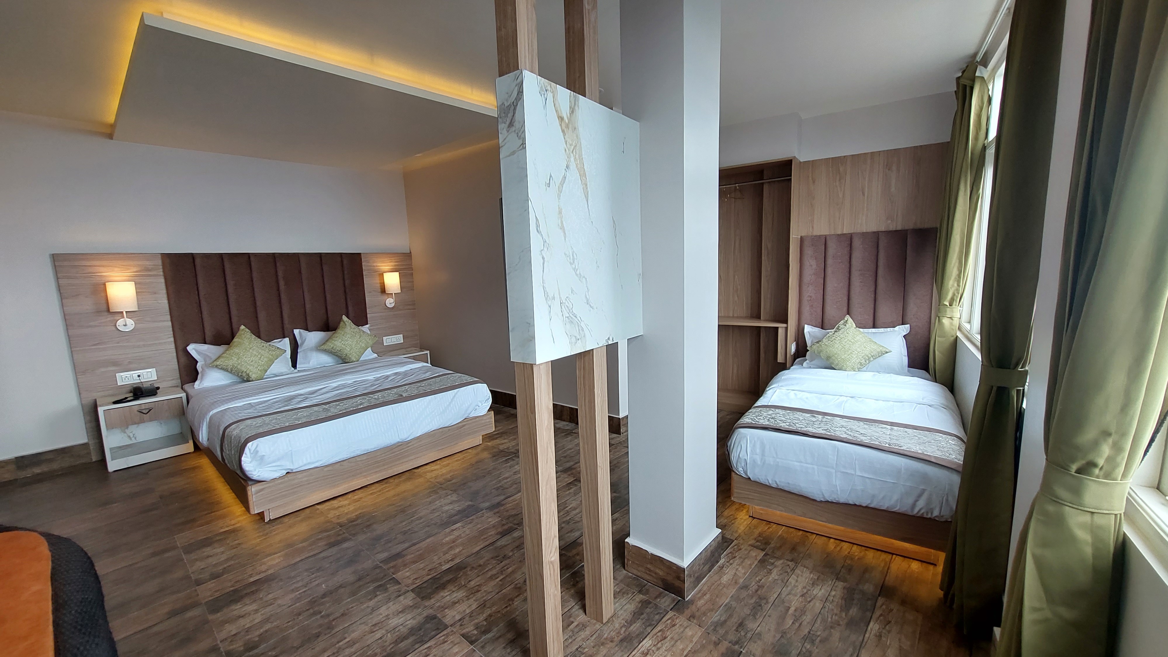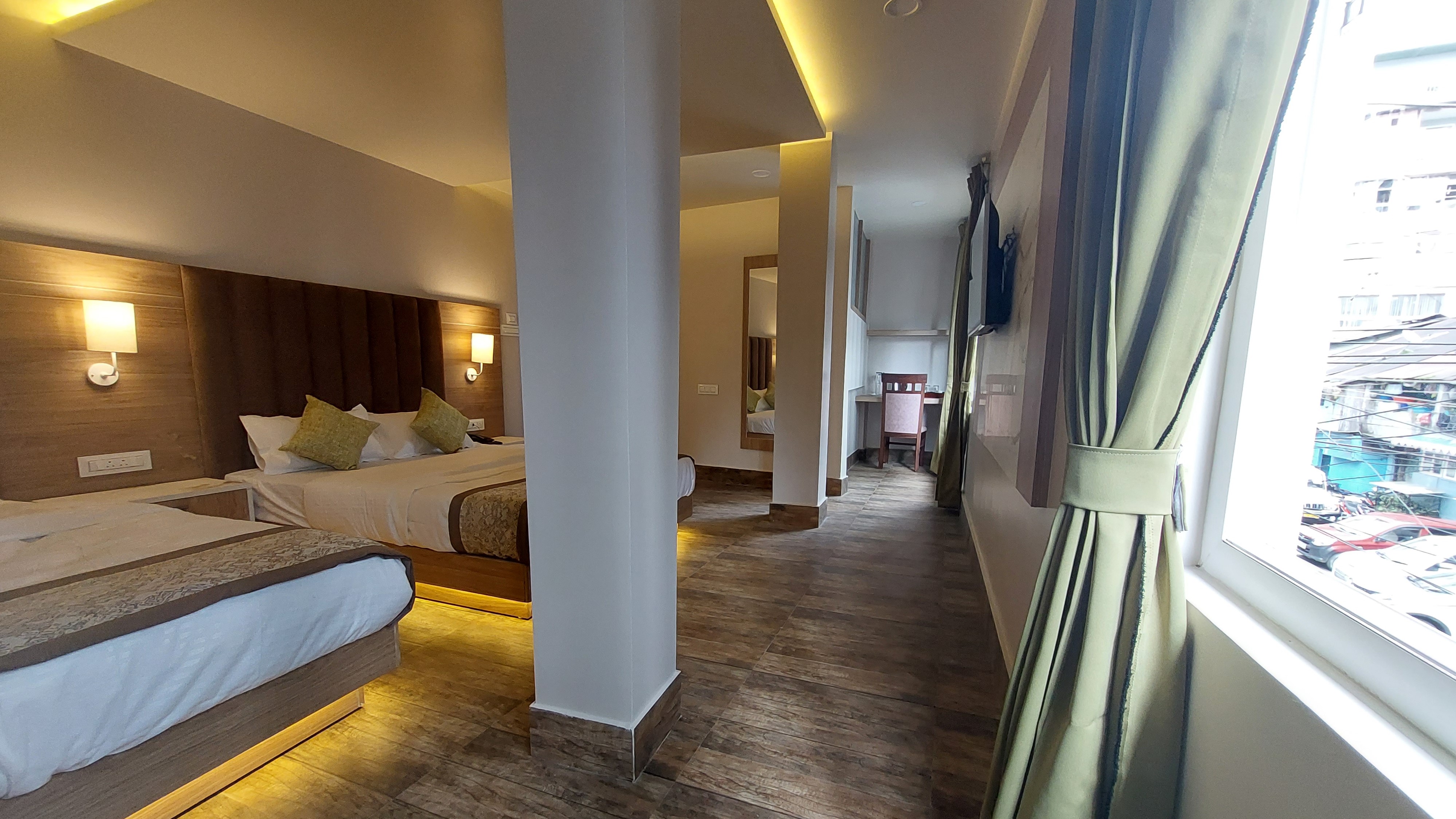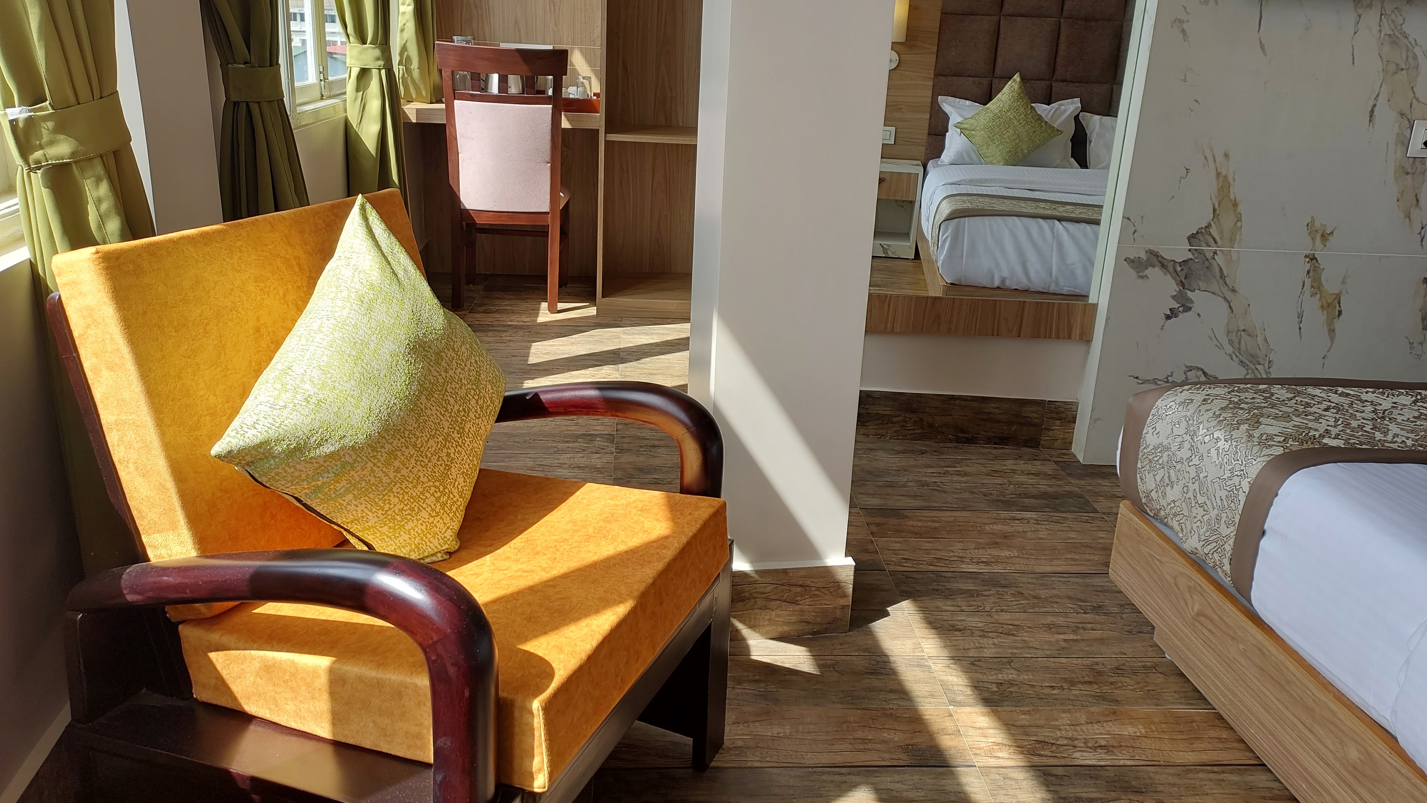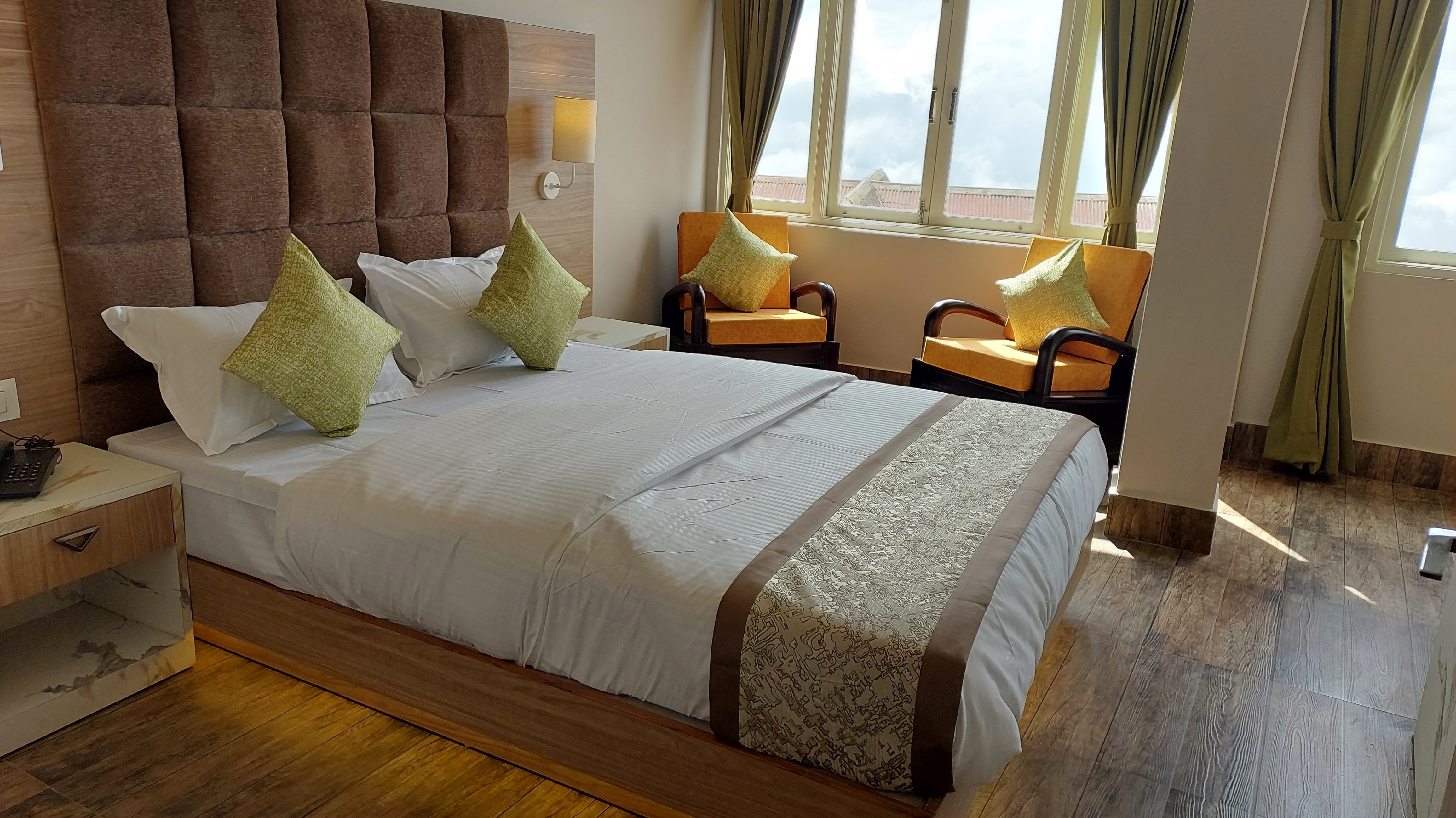 Your idyllic mountain escape in Darjeeling. Our upscale hotel promises an unparalleled experience with rooms offering captivating views of the magnificent Kanchenjunga mountain. From the comfort of your room, immerse yourself in nature's beauty, where the awe-inspiring sight of Kanchenjunga will leave you spellbound. Stay connected with complimentary high-speed Wi-Fi and enjoy Smart TVs in every room for your entertainment. A tea and coffee-making machine ensures your favorite beverages are within reach at any hour. Your safety is our top priority with stringent room security measures. Enhance your mountain getaway with our delightful refreshments, adding an extra touch of luxury to your stay.